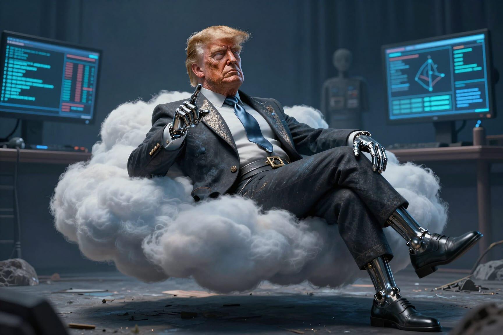 Emperor #Trumpolini uploaded to the Cloud, enjoying eternal supreme destructive power. My #AIart illustration. #satire #imperialism