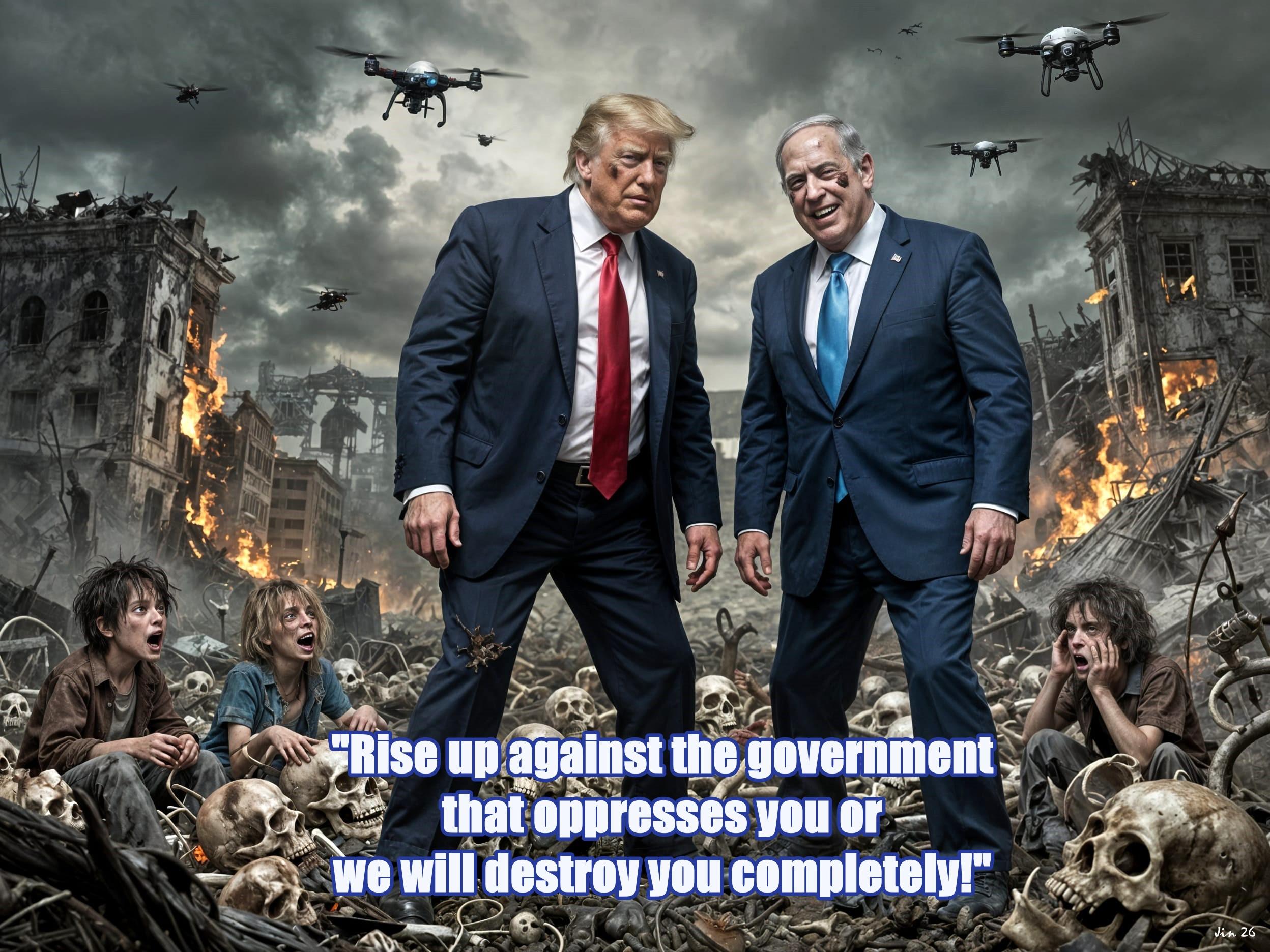 My satirical #cartoon for today. #AIart #AIcartoons #Iran #IsraelFascism #USFascism