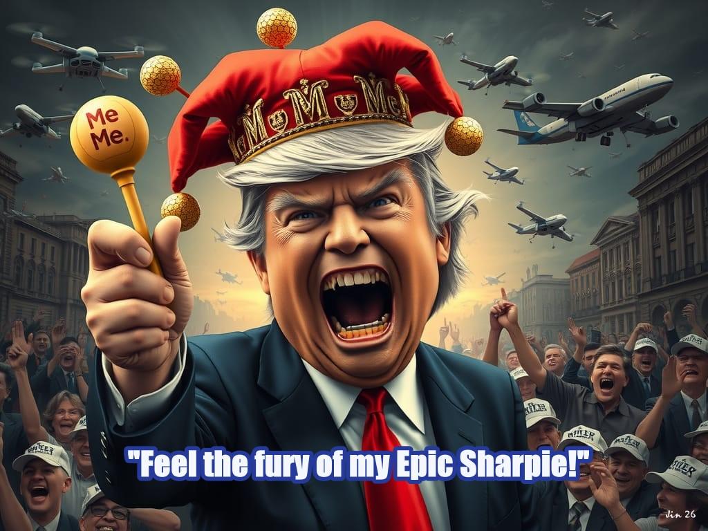 The bluntest pencil in the box - my cartoon for today, on #Trumpolini's latest weird rant. #satire #AIart #AIcartoons #USFascism #cartoons