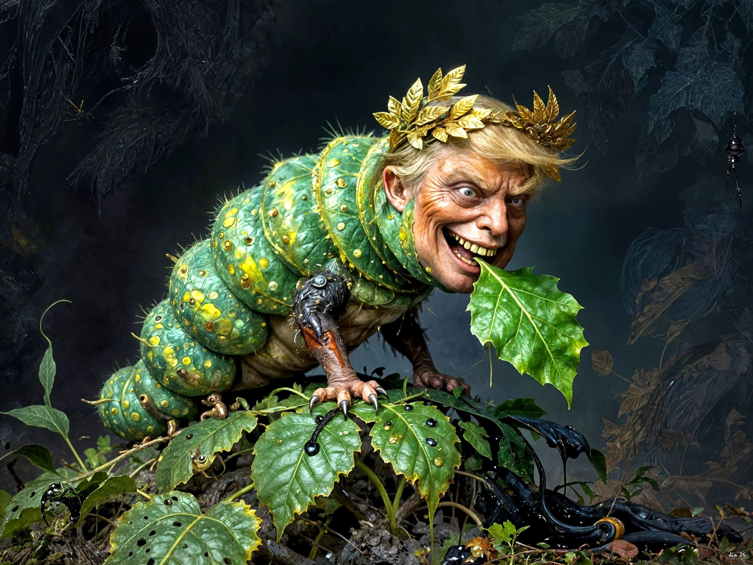 The very hungry #Trumpigula runs on oil and gobbles till the plant is destroyed. #USFascism #ImpeachTrump #AIillustrations