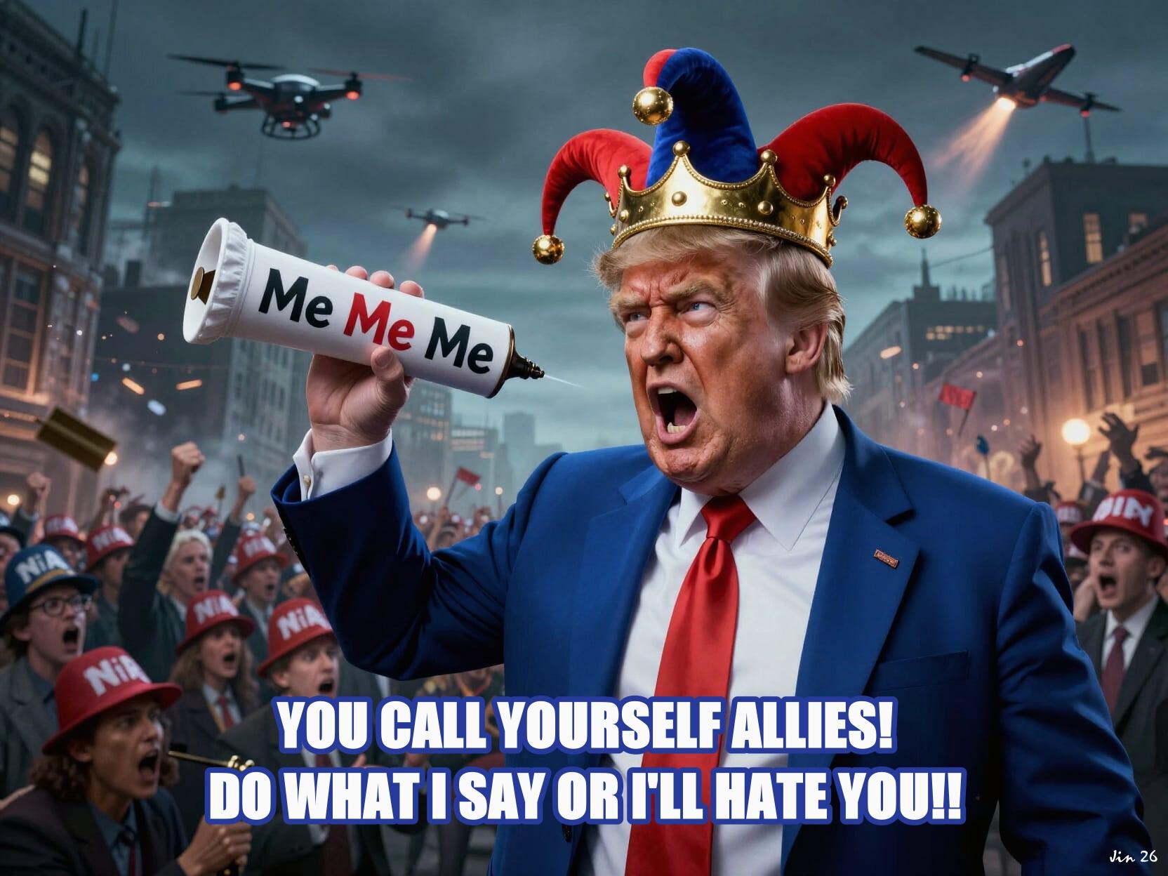 The US hegemon typically doesn't care if it is hated, as long as it is feared. Trumpolini however trolls the whole world to fear the Unstable Slavers. News for him - they already do. #AIart #cartoons #IranWar
