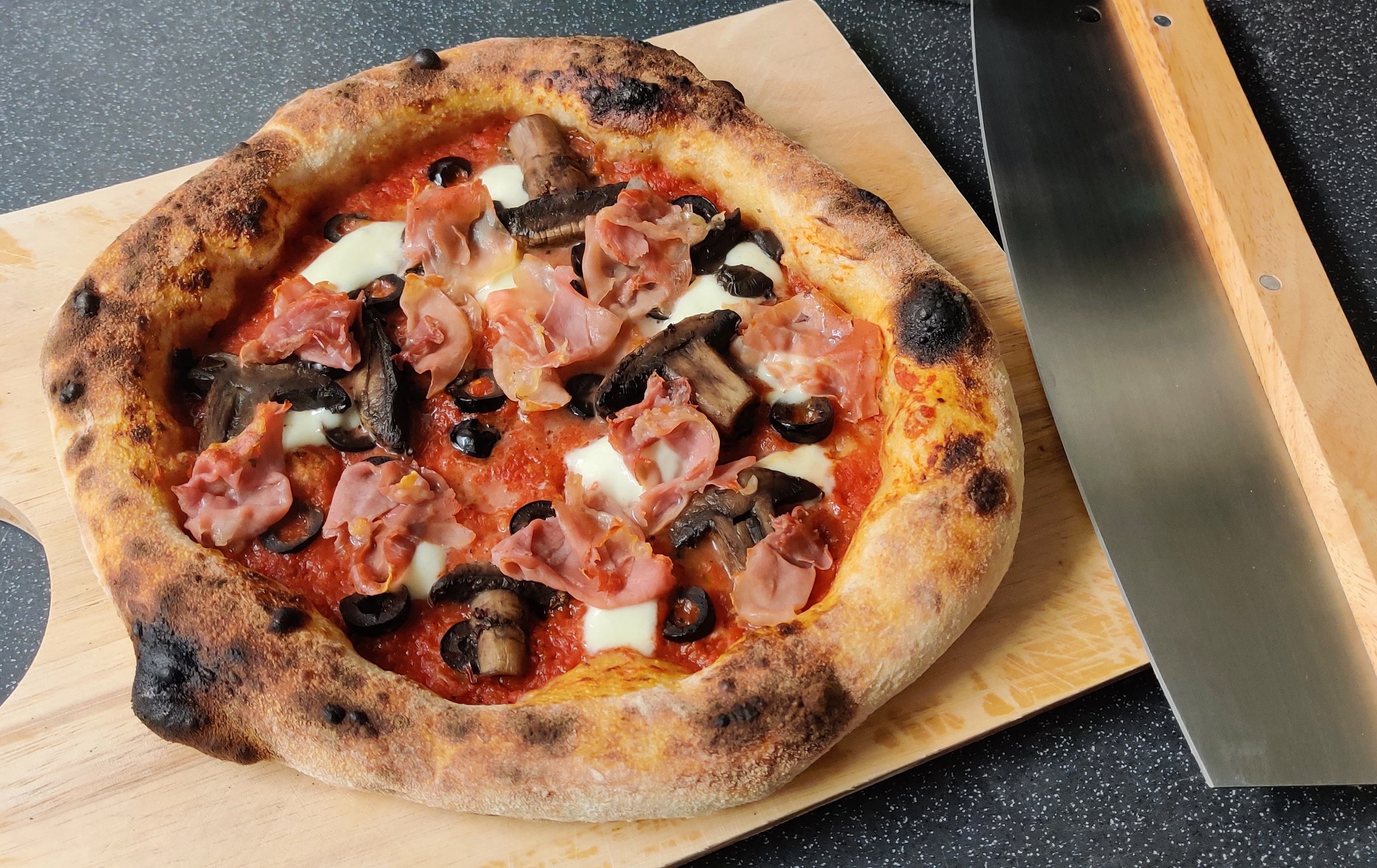 Homemade pepperoni, red onions, jalapeno, mozzarella