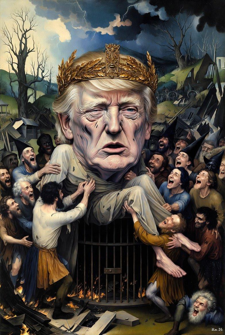 It was the worst of times, the bloodiest of times. From an early age, #Trumpigula had one ambition - to rule the world & feast on its blood. #USFascism #GazaGenocide #USWar #IsraelFascism #AIart #cartoons