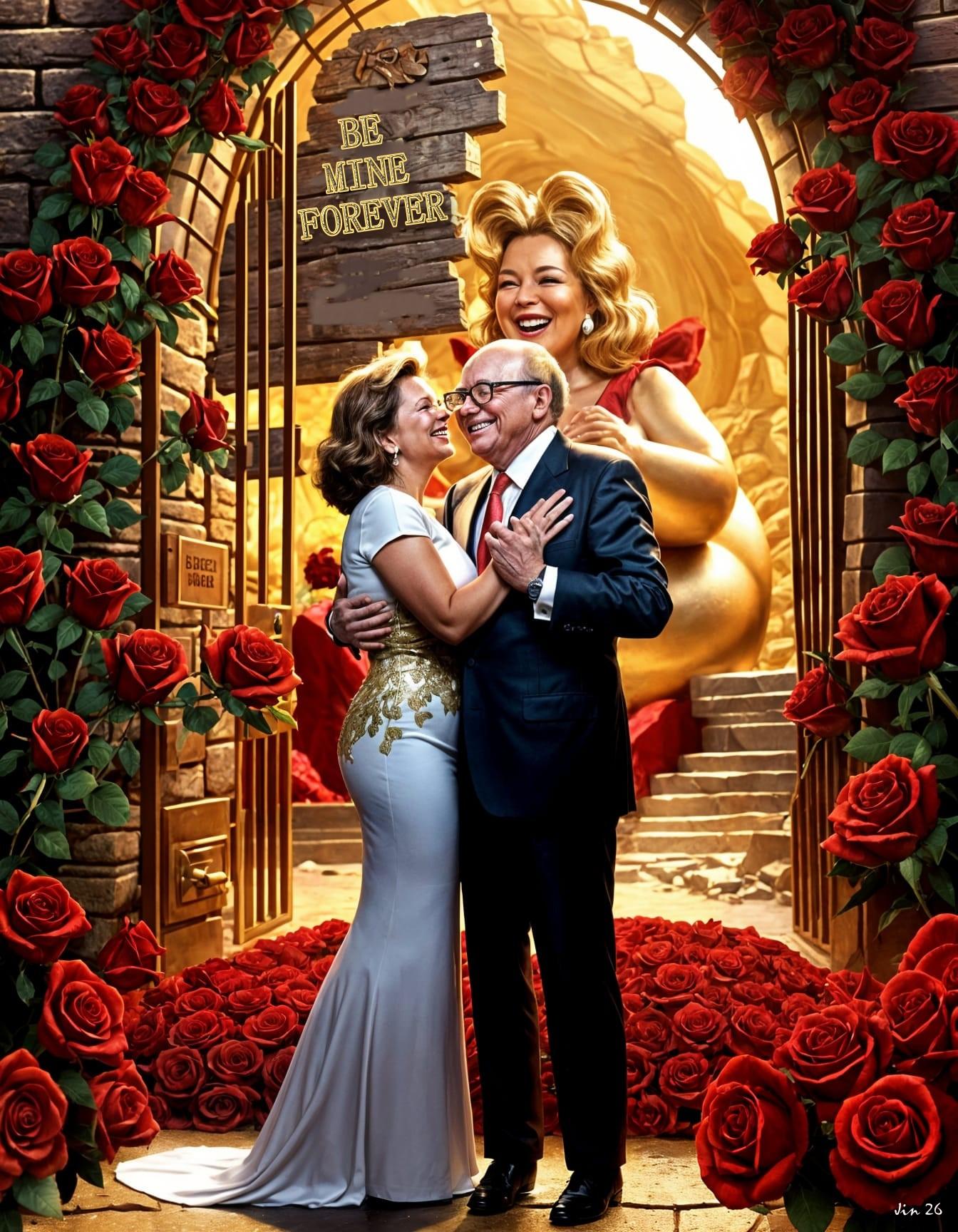 Today's a special day for all lovers of love ... here's the world's most terrible twosome who have begun an amazing, auspicious romance. Happy Valenmines! #ValentinesDay #AIart #satire